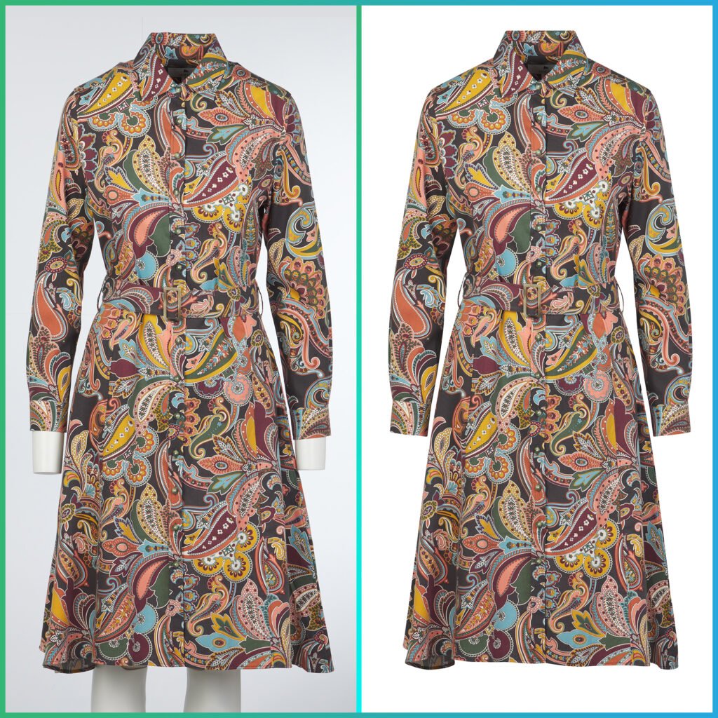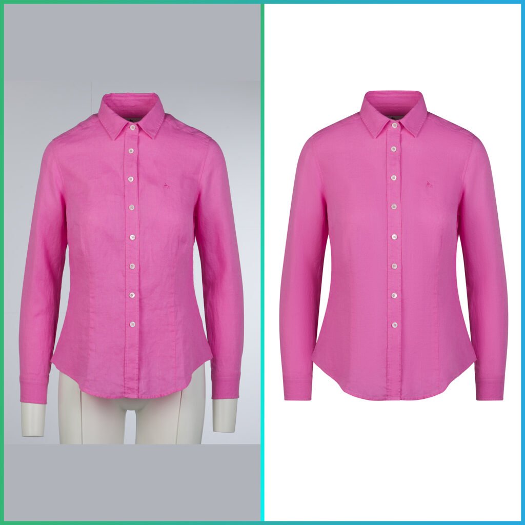 - Mannequin Removal: The physical prop is digitally extracted.